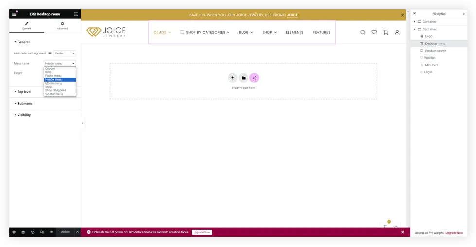 Built-in elementor custom enova widgets